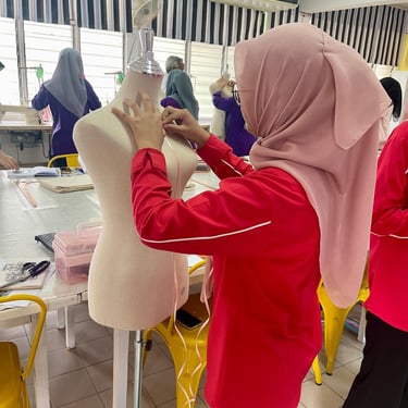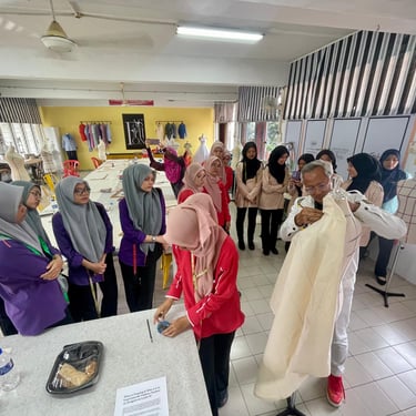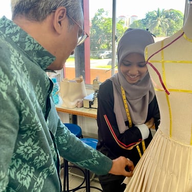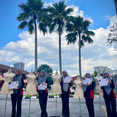 Explore moments from our exciting two-day Moulage Workshop, where fashion students practiced hands-on garment creation under the guidance of expert designer Wan Huzairil. Check out the creative energy, teamwork, and fantastic designs brought to life!